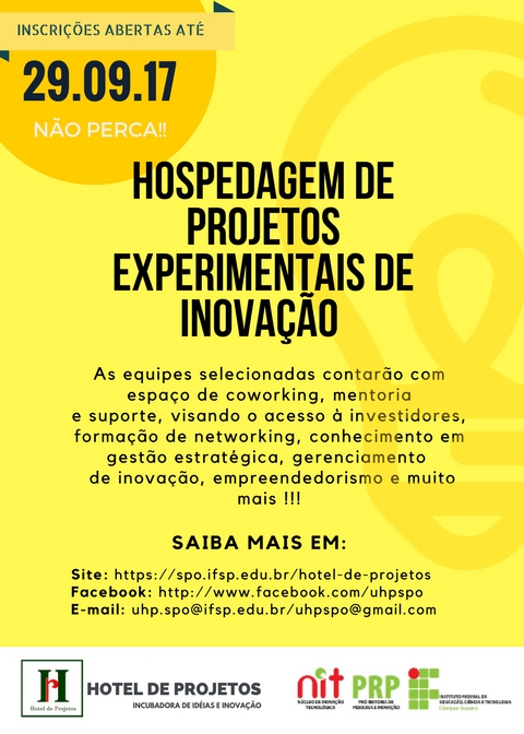A Unidade do Hotel de Projetos do Campus São Paulo está realizando processo seletivo para hospedagem de projetos experimentais de inovação